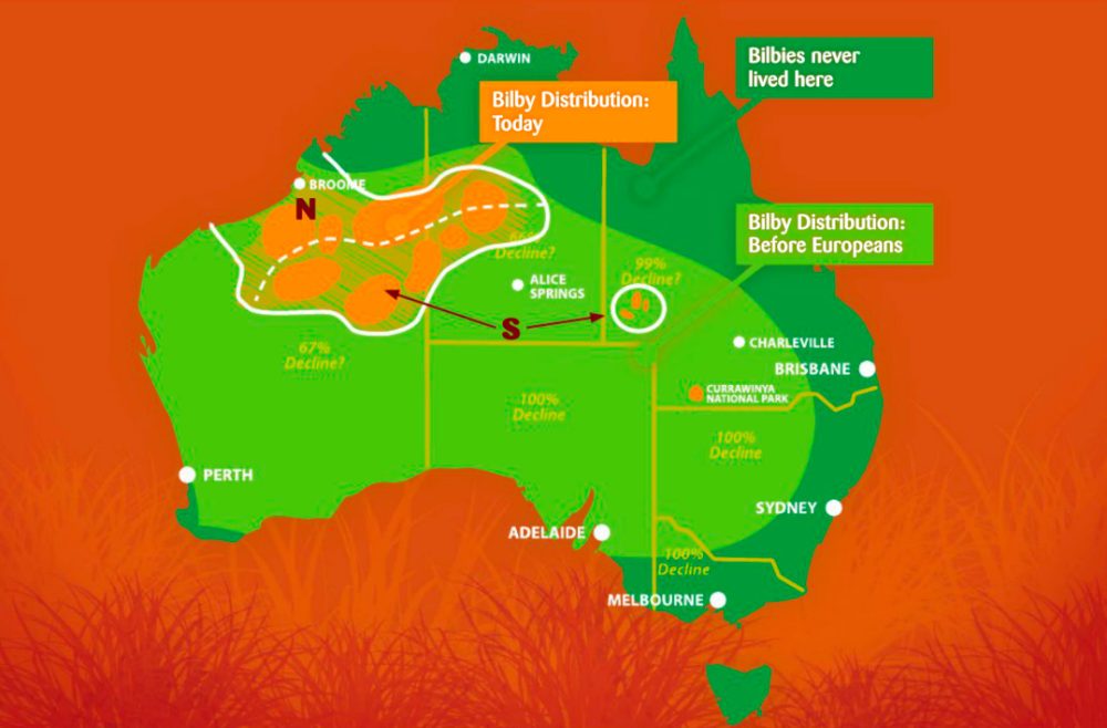 Firstly, bilby ancestors have been found as fossilised remains dating back 15 million years – which makes them a very special species. They have been an intrinsic part of the landscape across 70% of the Australian mainland for all that time. From the time Europeans arrived, bilbies stretched from the Great Dividing range in the east to the Gascoyne coast in the west.