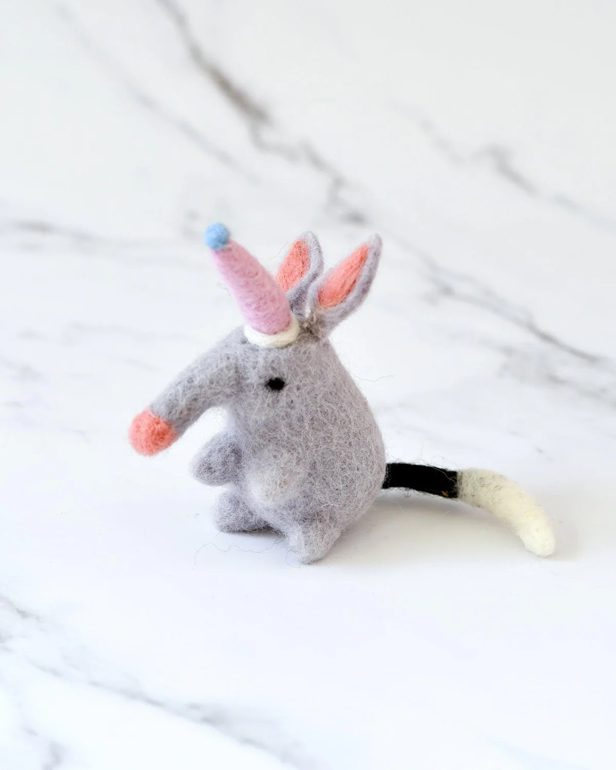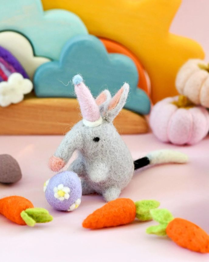 How adorable is this Felt Bilby Toy, topped with a tiny party hat! From the delicate needle-felted ears to the detailed tail, it’s made for magical small world adventures and loose parts play. Or just to sit there and look cute!